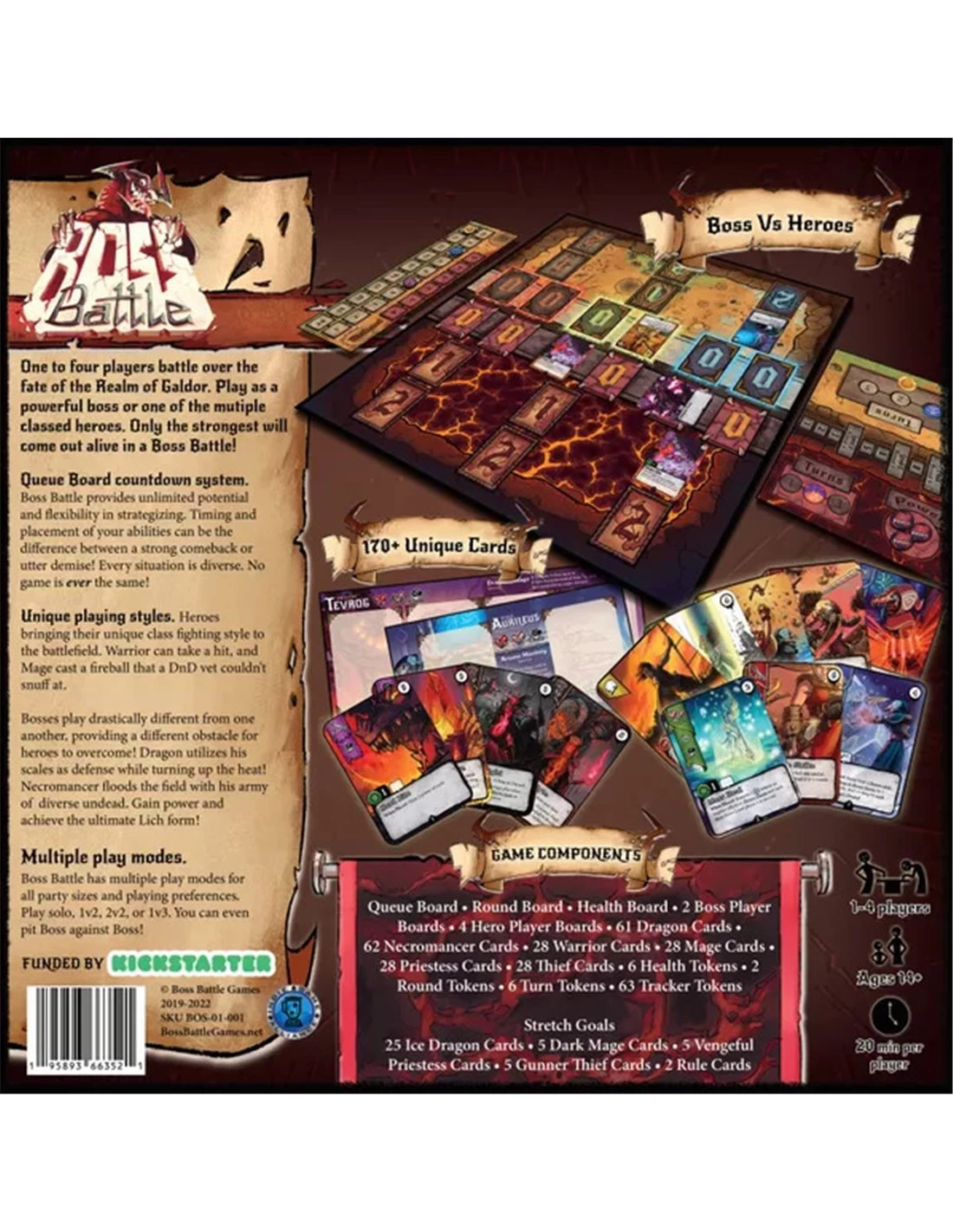 The Boss dominates the board throwing out obstacles the heroes must learn to work together to overcome. As the game progresses, heroes level up, and build their deck to adapt to challenges on the casting board. Heroes must think strategically, the Boss only gets stronger as the rounds progress!