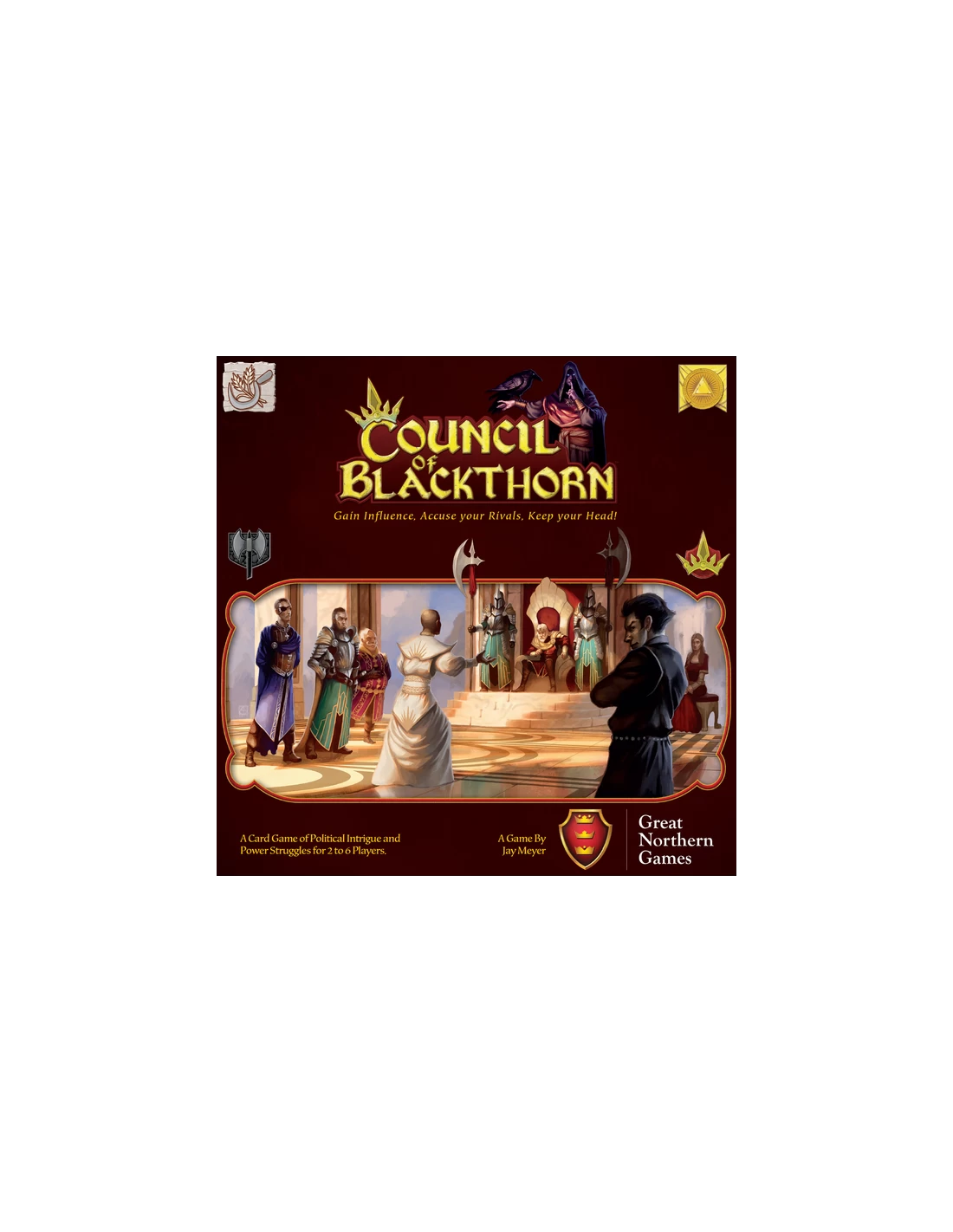 The King of Blackthorn rose to power on the strength of his sword, gaining the devotion of the people as he forged a nation and purged the ravages of war. Once a much needed beacon of strength for a foundling kingdom, he has now grown old and is no longer a vital part of a now robust and powerful country. Others have risen to prominence and power within his council. Adept in their machinations and plots, the councilors have their own self serving ambitions. In a shadowy battle of subterfuge they ruthlessly vie against one another for true control of Blackthorn. In this dance of treachery, each must seize as much power as able without drawing suspicion for whispers of treason echo through the halls of the King of Blackthorn. Whispers from fellow councilors designed to implicate and see the competition shortened by a head. The King will call for the axe for any he deems a traitor and there is always the risk that he is not as ignorant of the schemes as he seems.