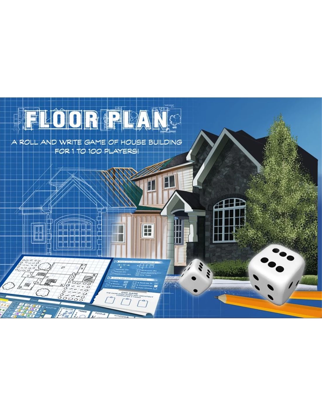 In Floor Plan players take on the role of an Architect designing a house for a client. Each round, a pair of dice are rolled and then players will act simultaneously, using the dice to either draw a new room onto their floor plan or add crucial architectural and landscaping features.