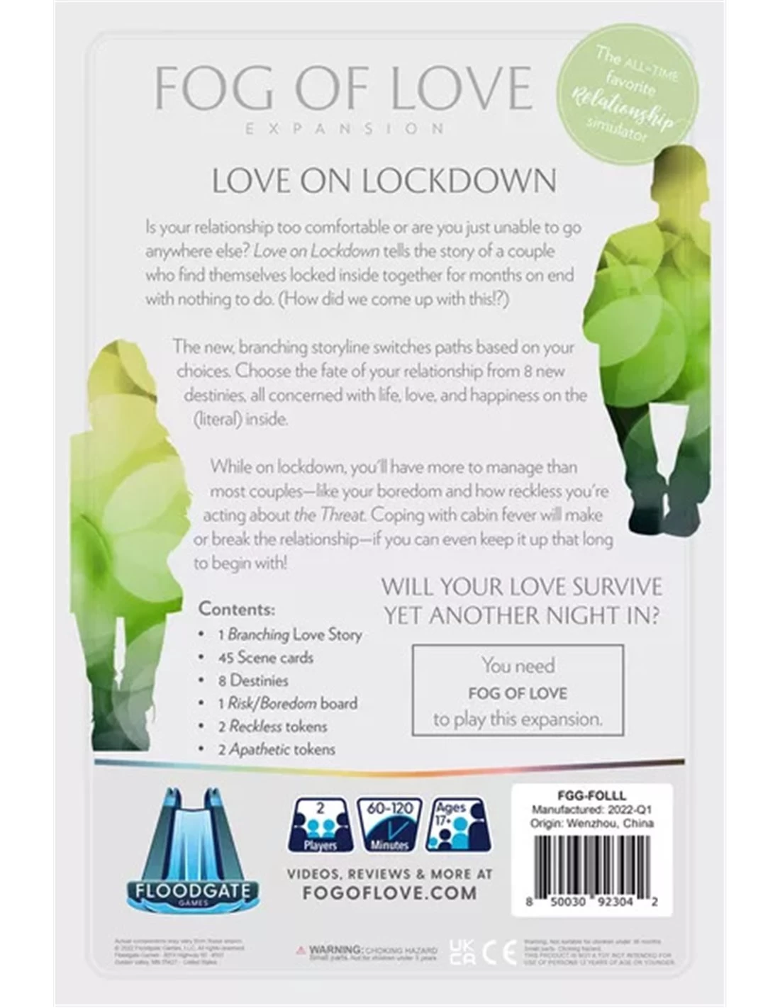 Love on Lockdown is an expansion to the critically acclaimed, Fog of Love board game. Love on Lockdown tells the story of a couple who find themselves locked inside together for months on end with nothing to do. (How did we ever come up with this idea!?)