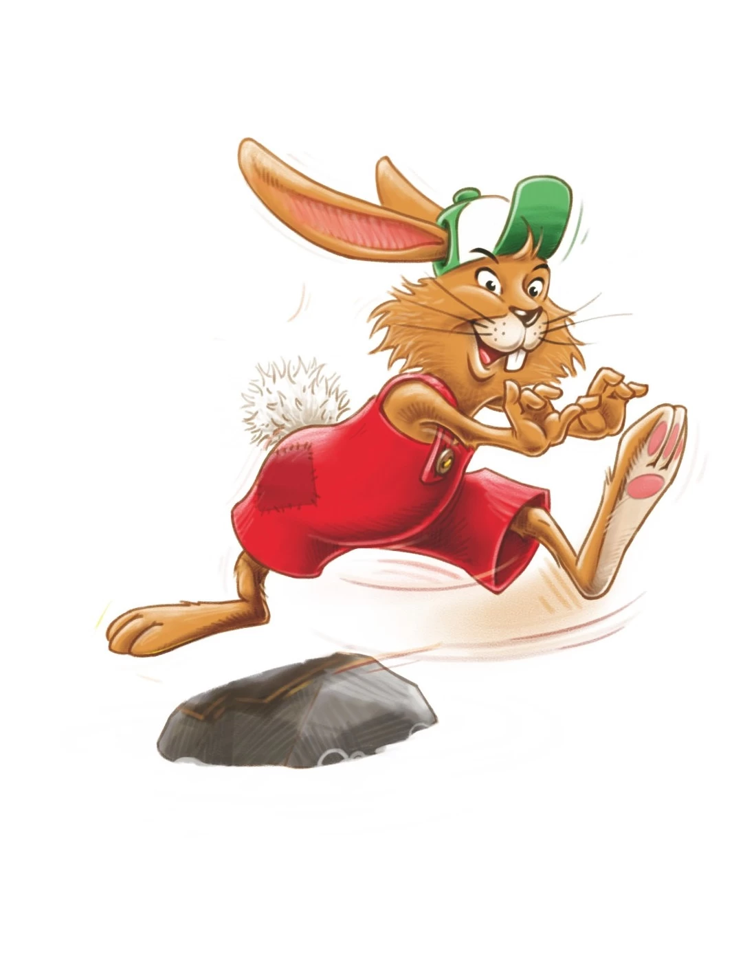 By repeating this process, the rabbits move down the “stream” to where the carrots are located, with the first player to reach a carrot winning the game. Additional carrots are included so that players can compete for second and third place.