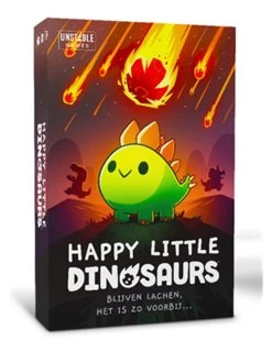 In Happy Little Dinosaurs, the first person to reach 50 points, or be the last Dinosaur standing, wins the game! During each round, you’ll flip a Disaster card featuring a Natural, Predatory, or Emotional disaster. Each player will play a Point card in hopes of collecting points and avoiding the disaster.