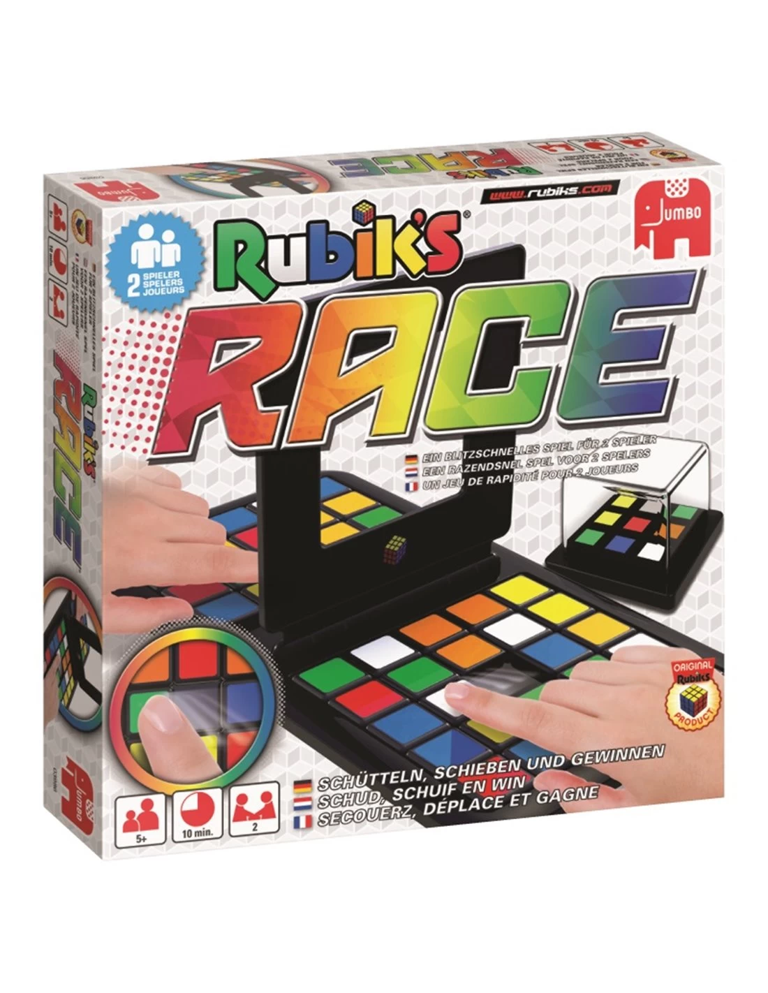 In this game players race to complete a puzzle. Each player has a 5×5 slide puzzle with one tile missing. At the beginning of each round, the “Scrambler”, a device that looks like a 3×3 Boggle grid with the cover on — but using colored cubes instead of letters — is shaken. Players then try to make the 3×3 center of their puzzle match the Scrambler.