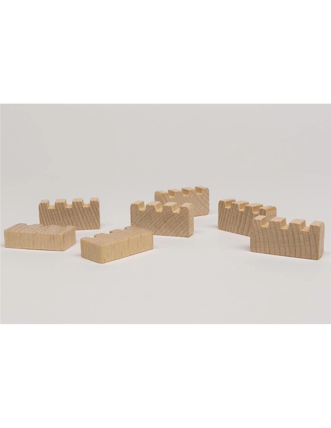 Blank houten kasteelmuur van ca. 3 cm breed en 1,5 cm hoog.