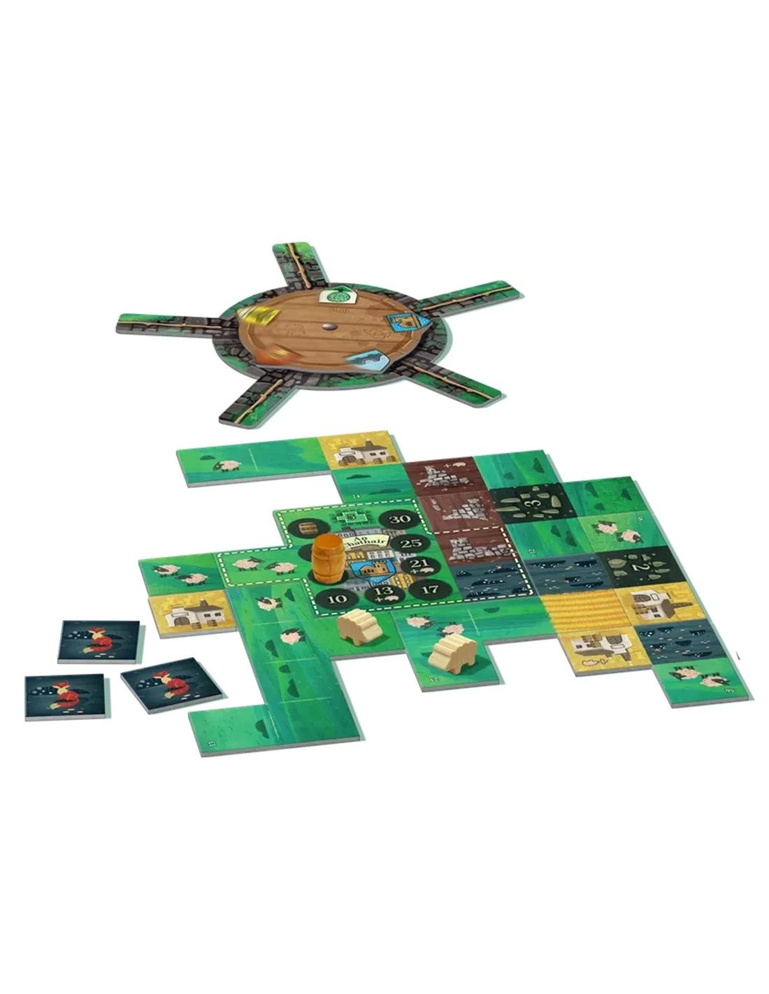 In the tile-laying family game Tipperary, players are challenged to create their perfect vision of an Irish county by placing polyominoes and thus collecting sheep, castles and whiskey. The linchpin ist a ‘magical stone circle”, that decides which of the tiles you can choose from. After twelve rounds, one player will be named chief of Tipperary.