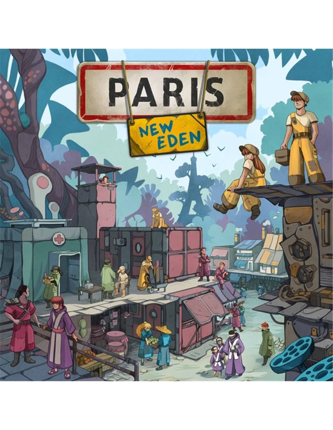 Paris: New Eden features a clever dice-drafting mechanism that allows you to recruit survivors. Over the span of one year, you will endeavor to build your shelter and overcome the array of obstacles that you encounter along the way. The dice allow you to recruit survivors of different types: tinkerers, brawlers, healers, sages, farmers, jacks-of-all-trades, or even useless survivors. At the end of each season, your survivors allow you to bid to improve your shelter. These survivors are recruited in five key areas and central squares of the Paris that we know, each one with different abilities: