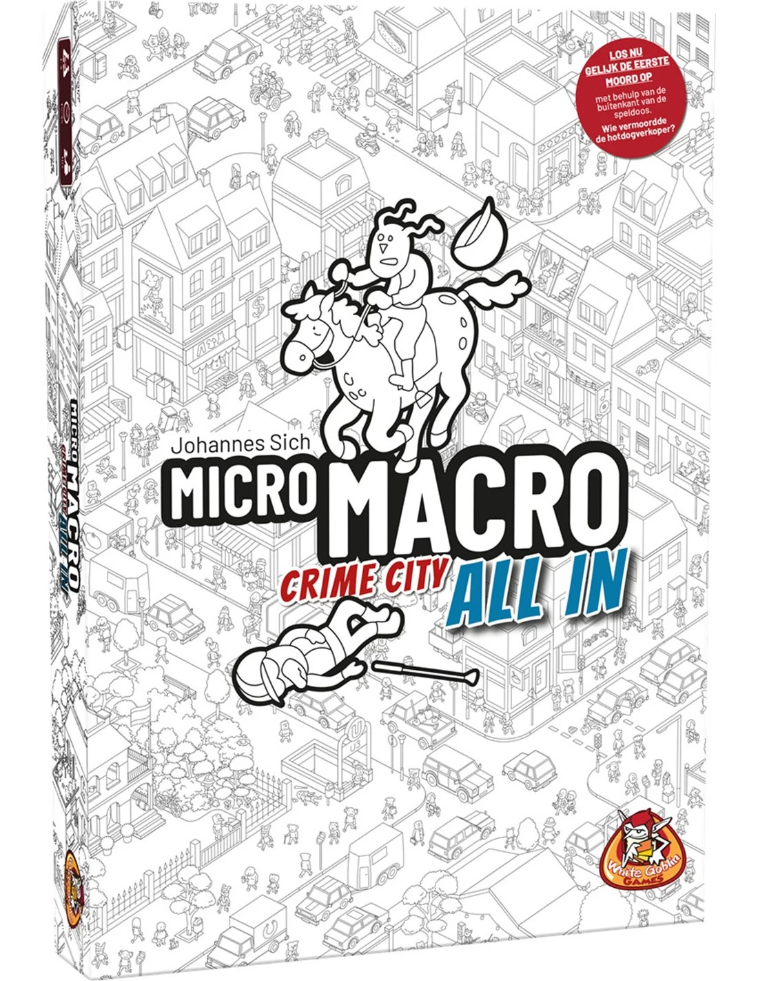 With MicroMacro: Crime City – All In, the next district of the crime-ridden black-and-white metropolis Crime City now opens up for the players. On a new, huge city map, which seamlessly follows the previous plans, 16 tricky crime cases are again waiting to be solved by one to four amateur detectives. These are brand new stories, more sophisticated and criminal than ever before! The aim is to determine motives, find evidence and convict the perpetrators. An attentive eye is just as much in demand as creative powers of deduction to unravel everything on the 75 x 110 cm game board. As a little help, a magnifying glass is included in the game and the individual cases are again marked with symbols, so that parents can decide which cases even the youngest investigators may investigate and uncover. MicroMacro: Crime City 3 – All In can be played completely independently, no previous knowledge from the other two parts is required.