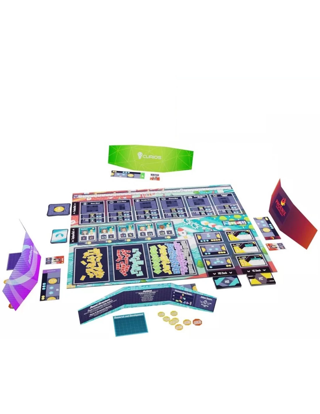 Players hire staff for their start-up company to put out new products, with the nature of the products being determined by patterns that you build with polyominoes. By putting these products on the market, you gain income, but other players might copy your product and take some of that money for themselves — refining your ideas to steal market share, as it were. Along the way you need to acquire funding, hire and fire staff, seek investors, expand your HQ, and try not to go bankrupt while working you way toward being the first company to be valued at $1 billion, which nets you the win.