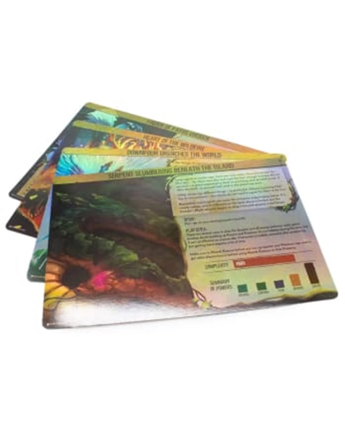 You have work to do, protecting your island from Invaders, but there’s no reason not to look good while you do it! This set of Spirit Panels replaces each of the Spirit Panels from the board game Spirit Island: Feather and Flame expansion with premium foil card versions of those same panels!