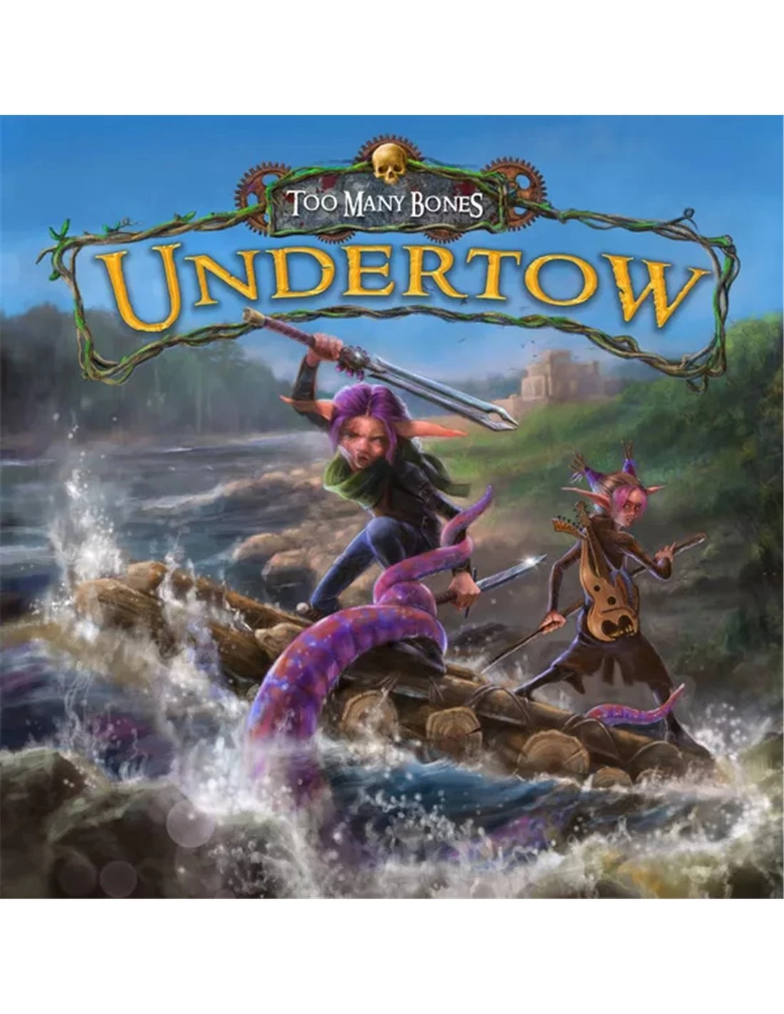 Too Many Bones: Undertow allows for 1-2 players out of the box, but by bringing in additional Gearlocs from the original game or adding in characters like Ghillie, Nugget, and Tink, you can create an adventure for up to four players. Undertow features all new baddies, encounters, tyrants, and a double-sided battle mat. Battles take place both on land and on your raft, adding even more variety and brain-bending tactics.